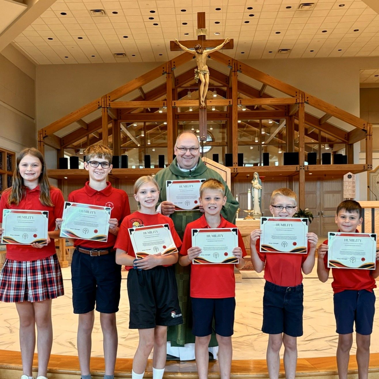 - Students participate in monthly faith ceremonies based on the Virtue of  the Month. These ceremonies help our school community have an intentional experience of our Faith and to strengthen our Catholic Identity. These school-wide ceremonies include:- August: Blessing of our classrooms with holy water